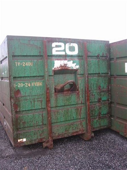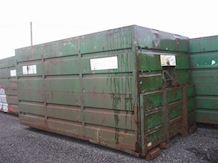 H. på kasse 2,20 m. Total højde med skinner 2, 40 m. L. på kasse 4,20 m. Total længde med bagsmæk og ruller 4,40 m. Bagsmæk åbner i fuld bredde og én meter op. De er til wire og krog i begge ender.