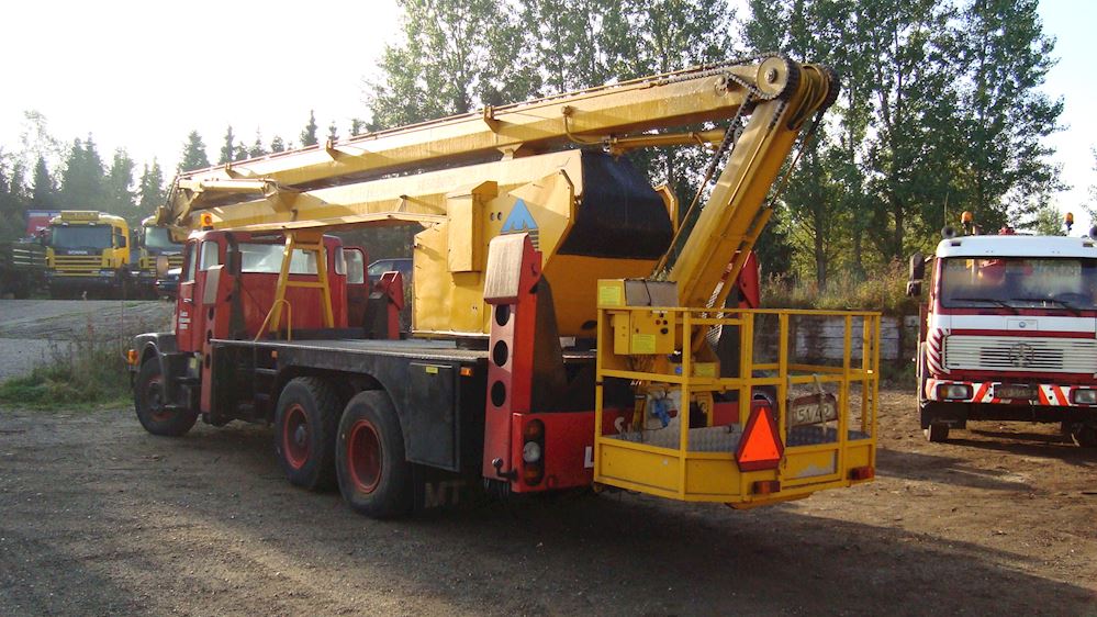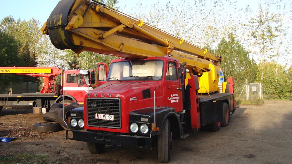 Volvo N 1025 med stor 27 m person lift med hydralick udtag. Tybe Bronto 325 lift. Kan også Kører også på el drift.